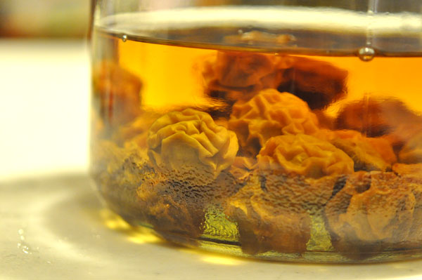 梅の実を取り出し、殺菌も兼ねて少し加熱。
