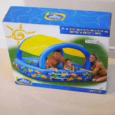 使ったプールはこれ、INTEX社製サンシェードプール。子どもの肌は紫外線ですぐ赤くなるのでシェードは必須だと思いました。