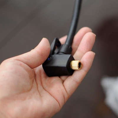 付属のアダプターはこれ。これを空気注入口にぐりぐりと挿しいれるだけ。結構しっかり入るのでぐらつかず、安定しています。