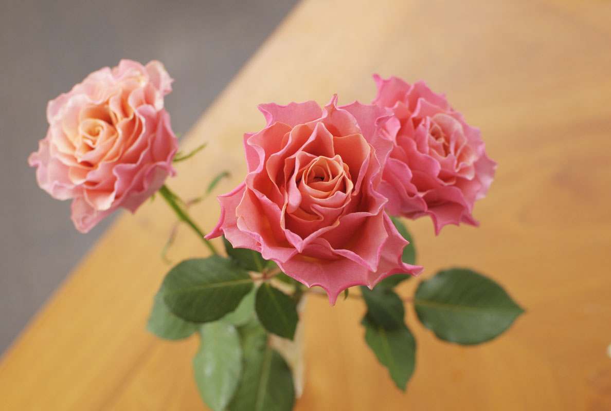 (いただいた薔薇。毎日少しずつ色が薄くなったり、黄色味がかったり、花弁が変化しました。癒されます)
