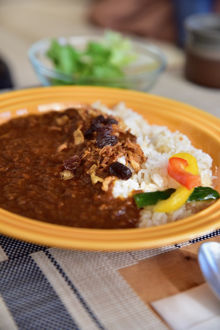 上のお料理は・・・ランチコースについてくるサラダ。牛すじカレー、イチジクのピザ、シーフードのバジルパスタです。3人+幼児で行った時の写真です。