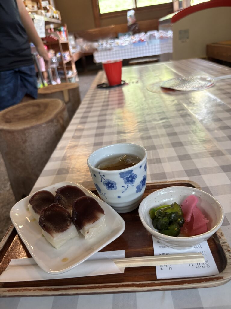 途中にまたお茶屋さんがあり、子どもはかき氷を、私はあんこ餅を食べました。