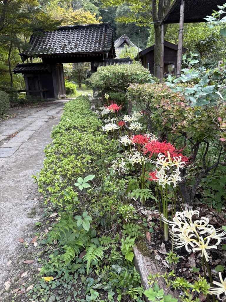 のどかな散策道、池、古民家、道端に咲く季節の花々。素敵な公園で多くの人がゆっくり散策していました。
