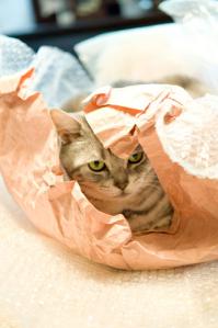 > 猫って、袋とか箱とか、とにかく自分が包まれるもの大好きですよね(^-^)